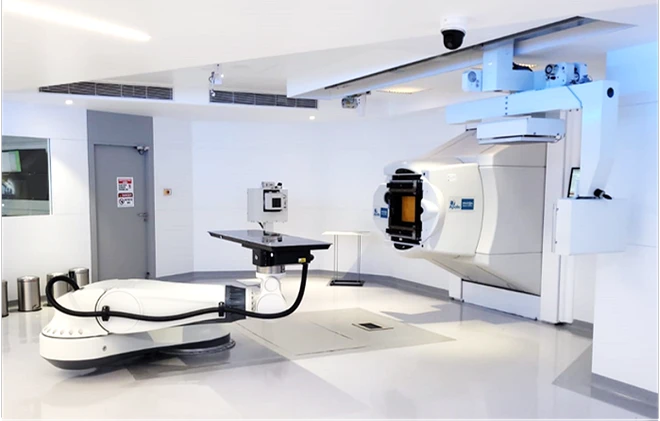 Le ProteusONE de CYCLHAD est une salle de traitement unique avec gantry ouverte, offrant un accès facilité au patient et à son entourage, ainsi qu’à tout moment au personnel soignant. Le design assez unique de cet équipement de radiothérapie de pointe offre une grande flexibilité d’angles de traitement, tels que des champs non coplanaires, champs vertex et permet ainsi une précision optimale pour tous les types de tumeurs éligibles à la proton thérapie.